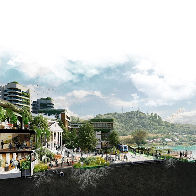 "Nature-based infrastructure solutions support resilience, equity, public health, and biodiversity, and accelerate carbon mitigation. Designing with nature can help global communities reduce greenhouse gas emissions by 50 percent by 2030 and protect and conserve 30 percent of ecosystems by 2030."