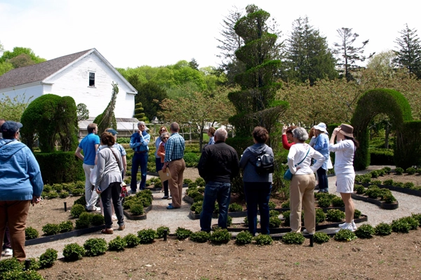 Also at Chateau-sur-Mer is the sole remnant of the 1974 Monumenta outdoor sculpture exhibition, Richard Fleischner’s Sod Maze. Other artists whose work appeared in the exhibition included Christo and Jean-Claude, who wrapped Price’s Neck on Ocean Drive, Alexander Calder, Willem de Kooning, Henry Moore, Louise Nevelson, and Claes Oldenberg. Tour guide Jim Donahue, Curator of Historic Landscapes & Horticulture for The Preservation Society of Newport County, touched on the challenges of maintaining Chateau-sur-Mer’s maze, as sections of the earthwork tended to collapse as time goes on.