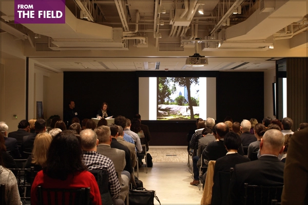 Last Thursday, Landscape Architecture Magazine (LAM) presented the first public event held in the ASLA Center for Landscape Architecture in Washington, DC. The inaugural LAM Lecture, featuring Elizabeth Meyer, FASLA, the Merrill D. Peterson Professor of Landscape Architecture at the University of Virginia School of Architecture, was just the start of a new phase for ASLA as a year of construction wraps up and we settle into our new space, designed by architecture firm Gensler and landscape architecture firm Oehme van Sweden.