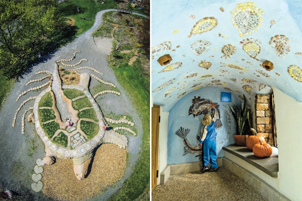 The Magic of Children’s Gardens: Inspiring Through Creative Design is a compilation of 19 exquisitely well researched, detailed, and well organized case studies of exemplary children’s gardens in public gardens throughout the United States. Themes explored throughout the book include: growing, engaging, sustainability, differing levels of available interaction, teaching, learning, regionality, history, culture, inspiration, and imagination. The range of projects included in the book covers large scale budgets as well as grassroots endeavors. Some of the gardens are pristine and some incorporate a more ‘wild’ nature playspace theme. Many of the projects involved a community and participatory design process, with input from the meetings included in the designs, thus ensuring that the gardens would best meet the needs of our young visitors. Adding to the child-centeredness of the gardens described in the book, for a number of the projects, experts in child development and horticulture were consulted as part of the design process.