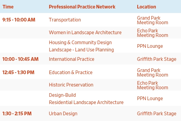 Through PPN Live, you can network with colleagues from all 20 ASLA Professional Practice Networks (PPNs) throughout the annual meeting weekend. This is all part of PPN Live: