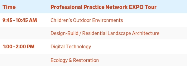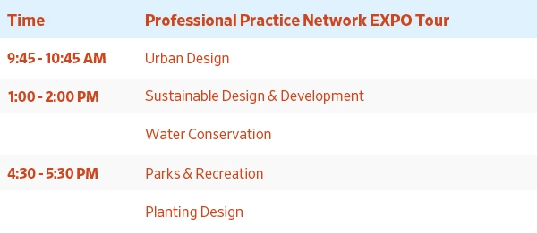 ASLA is also offering attendees the opportunity to network with PPN peers and product exhibitors in a PPN show floor tour designed to highlight PPN topic areas. PPN EXPO Tours will take place on Saturday and Sunday during EXPO hours and will provide 1.0 PDH (LA CES/NON-HSW). The tours will offer attendees the opportunity to learn about new and improved products and how these improvements and services can assist in creating a successful design project. Each one-hour tour will include up to four presentations by various exhibitors.