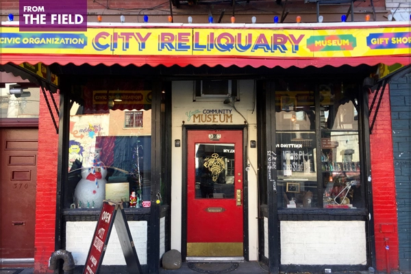 Visiting New York's City Reliquary is like walking into one of artist Joseph Cornell's boxes—every surface inside the three-room museum is meticulously adorned with artifacts and salvaged ephemera. Display cases are crammed with items (with drawers below holding even more), the walls are covered to the ceiling, and the dim lighting enhances the sense of being immersed in a contemporary take on a cabinet of curiosities.