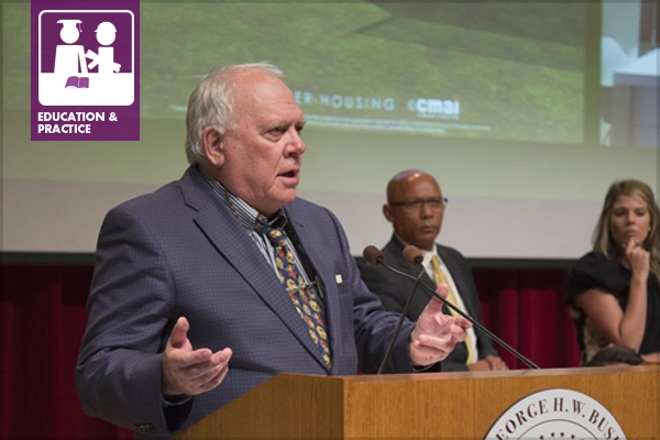 The Leadership in Community Development Conference, open to the University and professional communities, was established by Professor Geoffrey J. Booth, former director of the Master of Land and Property Development program at Texas A&M to improve relationships between students and the leaders of the planning, design, and development fields. In addition to presentations by Dr. Mulder, attendees heard reports from his former interns from the Department, now established professional practitioners, who described the importance of their own experiences in working at CMAI during their student years, and for some, for an extended period of employment. Mulder established a long-standing tradition of mentoring student interns during the firm’s early years of the 1980s and he has continued in this role up to the present.