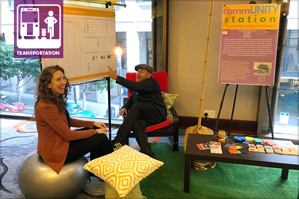 For the past few years, the Local Government Commission (LGC) has partnered with the American Society of Landscape Architects (ASLA) and other organizations to showcase the great potential of parklets as public spaces during annual New Partners for Smart Growth (NPSG) Conferences. This year, during the conference in San Francisco, various organizations participated in the Parklet program. Our team, representing Riverside University Health System-Public Health (RUHS-PH) and Alta Planning+Design (AP+D), collaborated on the design and creation of a public space we called CommUNITY Station.