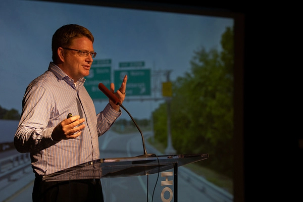 Douglas noted how, over the past 50 years, interstate corridors have not changed much, if at all—and they often look eerily similar across the country, no matter the landscape context. Bureaucracy, concerns for worker safety, costs, and the public’s lack of interest and enthusiasm for change were among the deterrents he cited for transportation transformation thus far.