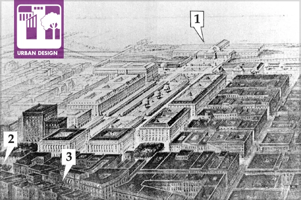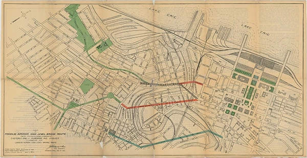 Whereas Detroit’s Woodward plan launched a framework extending far from the city center, Charles Burnham’s Group Plan for the City of Cleveland established only an immediate civic core. This was due mainly to the downtown’s unique geography, as the Cuyahoga River Valley isolated it from the more residential areas pushed to neighboring bluffs. Development in these areas loosely followed what translated in Iroquois to “the crooked river,” and could be best characterized as piecemeal; not following any distinct pattern, and often, the law.