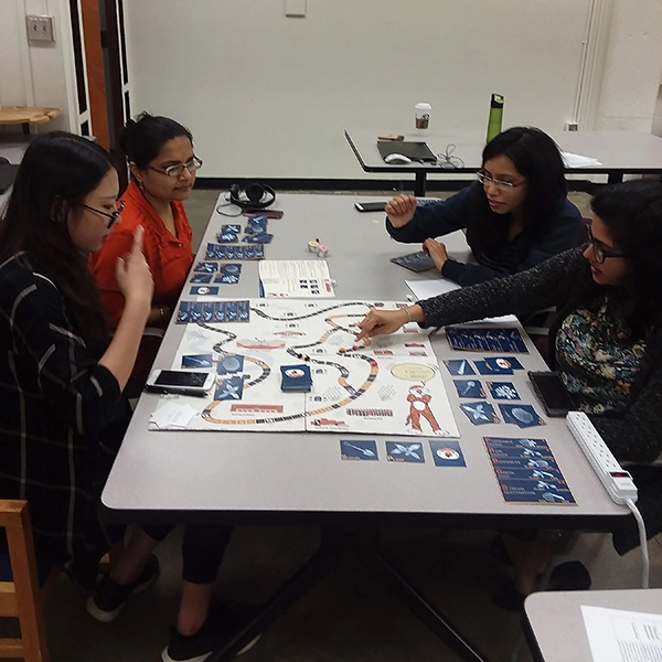Game Research & Evaluation Graduate student game designers researched several popular board games prior to initiating design. Furthermore, each phase of the green infrastructure games underwent 30+ iterations of game play. Each game was evaluated on clarity of board, bits and rules; flow; strategy verses luck, length, theme & mechanics integration, and tension verses fun. The game crafters observed over 30+ hours of test game play, interviewed players and made improvements to their games along the way.
