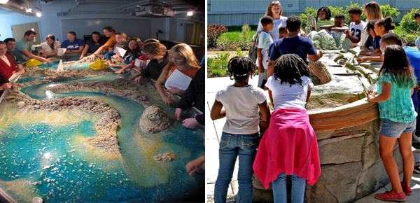 Imagine how many more activities the patio would support if it included programmed exhibits that challenged children to build dams, use sand to divert water, investigate infiltration, and explore soil erosion.