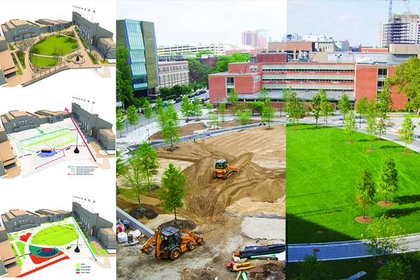 Deeproot Green Infrastructure Landscape architects should take full advantage of the stormwater mitigation potential of urban trees and soils, as research on suspended pavement systems conducted at North Carolina State University is consistent with downtown revitalization efforts such as in Uptown Normal, IL.