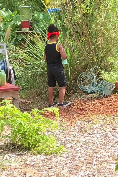 The DBCG also employs tools to open nature’s window such as microscopes and binoculars that are a stay-in-place and look, listen, and carefully observe way of interacting with birds, plants, soil, and water. It is a wondrous world that opens its treasures to those who have the ability to sit still and see, an ability that is to be admired and learned from by children and people who are busy running through life. We are multiplied by our experience of being one. These nature lessons of ability are an example of how careful observation of nature is available even in an urban setting. The DBCG is more than the sum of its parts—the Giants House, Propagation Area, Vegetable labyrinth, Dream Garden, Weather Station, Banana Forest, Pond, Stage, and Wishing Wellness Garden are the garden rooms found within the garden, but the lessons available to gain enlightenment are infinite. Who would guess that you could learn about ability and its profound impact on what every species does simply by walking through The Delray Beach Children’s Garden Gate?