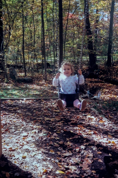 I was fortunate in that the neighborhood in Maryland where I grew up was intertwined with a forested trail system. The trails were dotted with tot lots composed of a few simple play elements, like a wooden platform with a slide, or a couple swings. We had a swing set in our backyard, too, but traveling through the forest and the feeling of swinging amidst the trees was a far better adventure.