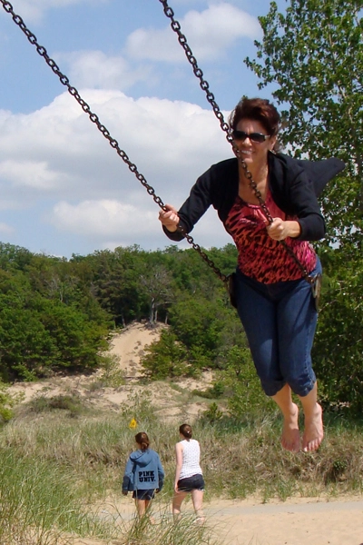 Not so long ago, my sister and I were at Lake Michigan, feeling like kids. We promised ourselves that we would make more time for play in our day after that trip. Can't help but smile as I remember that experience and how the "pumping" to go higher came back to us quickly—but we opted to NOT jump off and land like gymnasts like we did as kids!