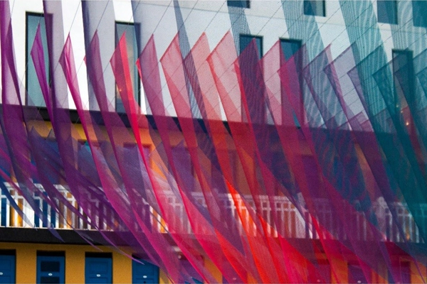 Space is their fundamental inspiration. Their work not only uses shapes and patterns found in architecture, it interferes with its environment, thus changing the spectators’ perception of space. Their works bring instantaneous senses of space through special elements such as moire effect, wind and light. It creates space for its color. To them, color is more than form, it is the content itself.