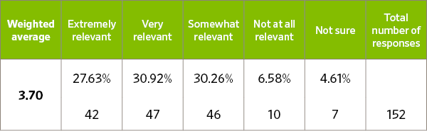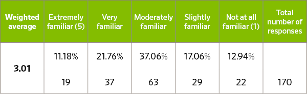 First we asked several questions to gauge respondents’ definition, knowledge of, and existing level of interest in this practice area, using a 1 to 5 scale, with 5 signifying the highest level of familiarity, agreement, or relevance for the given statement: