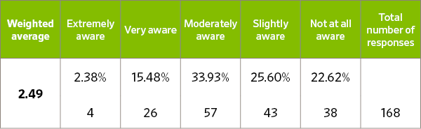How aware are you of ASLA's efforts to integrate environmental justice into the profession? (e.g., EJ PPN, federal advocacy efforts)