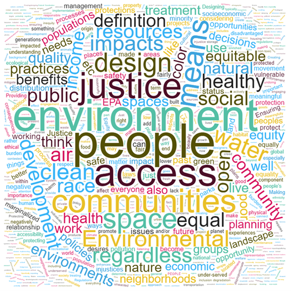 Defining key terms is a critical first step in elevating environmental justice as a focus for landscape architects. We asked respondents to describe what environmental justice means to them: