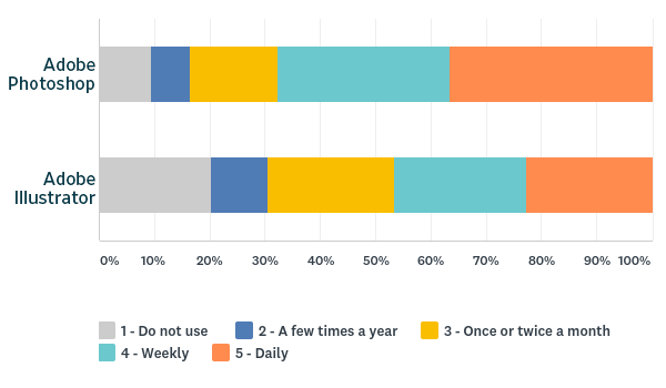 - Photoshop and Illustrator have the strongest correlation of all, off the chart correlated. Clearly if one of these programs is valuable to your workflow, then they both are.