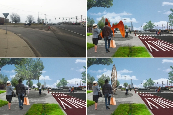 One of the early mistakes I made in my charrette graphics work was to let the perfect be the enemy of the good. Charrettes are all about getting quick ideas down as legibly as possible. There is little time to perfect things, and ultimately, the “mistakes” become part of the art form of the graphics. Designers on charrettes have to learn to loosen up and let the ink or computer linework flow and realize cleanup and corrections can happen at the office after the charrette is over. Working in SketchUp, Adobe Illustrator, and Photoshop is not immune to this tendency either.