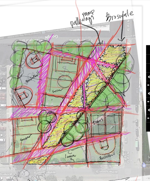 One of the greatest learning benefits of the remote instruction approach is the digital footprint shared between instructors and students. Prior to classes and meetings, students would share their materials via Google Drive, email, or other digital format so that instructors and reviewers could review materials in advance. During the meetings, instructors could then use tools like iPad Pros with iPencils, the Morpholio Trace app, and BlueBeam to mark up students’ work while engaging in a discussion through Zoom. These sessions were recorded and then uploaded or emailed along with the mark-ups providing students with a multisensory leave behind of the meeting. This process created a timeline of idea development that can be used to track progress and be recalled for future use.