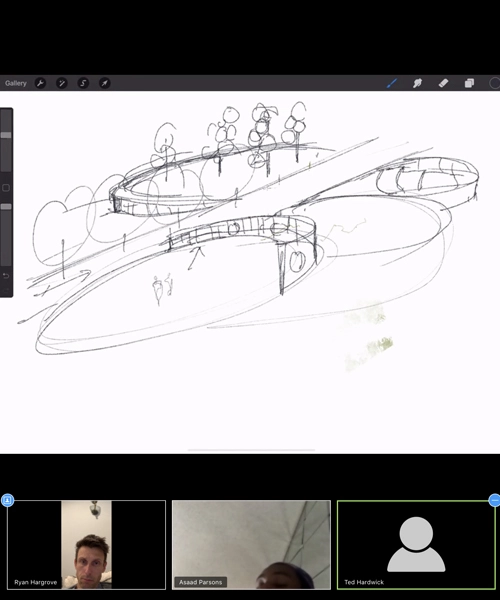 For Ryan and his students, there were a few immediate advantages that enabled the rapid shift to remote learning to happen relatively smoothly. First, he quickly recognizes the importance of having had several months together building the student bond and rapport with the instructors. This was critical in developing the comfort level of students reaching out with questions and concerns, easing student collaboration, and allowing instructors to better understand the ways individual students learn. The second notable advantage was that students in the undergraduate studio began the semester on a digital platform with every student using an Apple iPad and iPencil. Instructors and students began interacting and creating content digitally from the first day of the semester. While these advantages may not have been unique to Ryan’s class, having access to this technology and the skills to use it opened the door for remote collaboration that was not a far stretch from the way they were using the technology during in-person instruction.