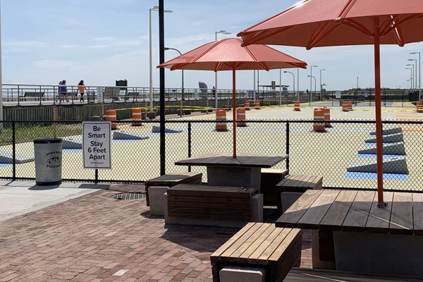 The game area at Jones Beach State Park is open (with restrictions in place), but quiet on a weekday afternoon. / image: Alexandra Hay