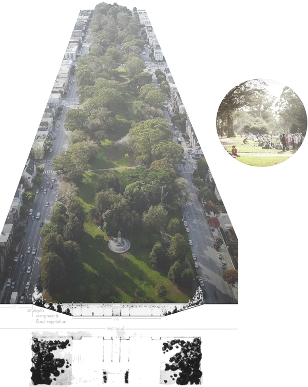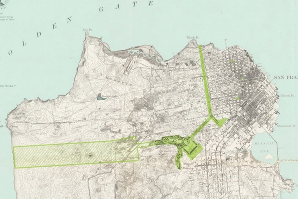 In his original push, he promoted the idea of avenues of respite that also doubled as emergency relief in the event of fires or earthquakes. He had visited on the heels of a deadly earthquake, cholera outbreaks, and fires that leveled nearly all of San Francisco, and saw this as an opportunity to redirect the city towards smart growth with more immediate results by placing it adjacent to its developmental edge.