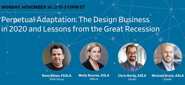 Taking place November 16-18, reVISION ASLA 2020 is a virtual program that will embody the intersection of ASLA's mission with some of the most urgent issues facing our society. Over three days, panelists and participants will address issues of equity as they manifest in our profession and institutions today, tools and methods for innovative design and successful implementation, transformative mitigation and adaptive resilience strategies for climate change, and much more.