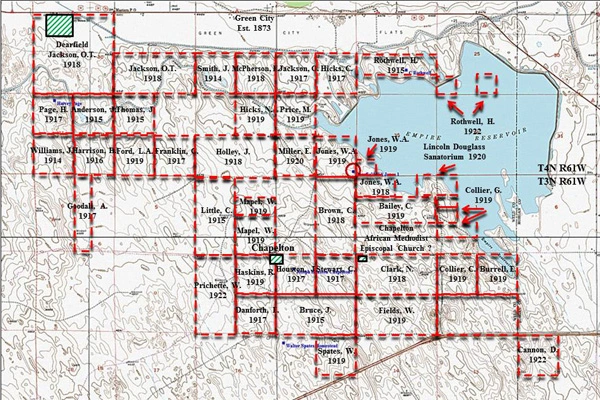 Unlike many white homesteaders, most Black homesteaders chose to settle together in rural communities as self-identified ‘colonies.’ Among those communities were Nicodemus (Kansas), Dewitty (Nebraska), Sully (South Dakota), Empire (Wyoming), Blackdom (New Mexico), and Dearfield (Colorado) (Friefeld et al.). Dearfield is exceptional because the colony's main townsite remains one of very few that still has intact, original standing buildings. It was also one of the latest, established in 1910 when most of the West and Midwest's desirable farmland and water rights were already claimed.