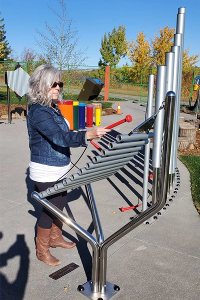 Designing for a cold city like Calgary can be challenging to ensure winter use. The opportunity to play the instruments and continue to be accessible in the winter months is made possible by kind local residents that were already connected to the park and regularly donate their time to clear the snow.