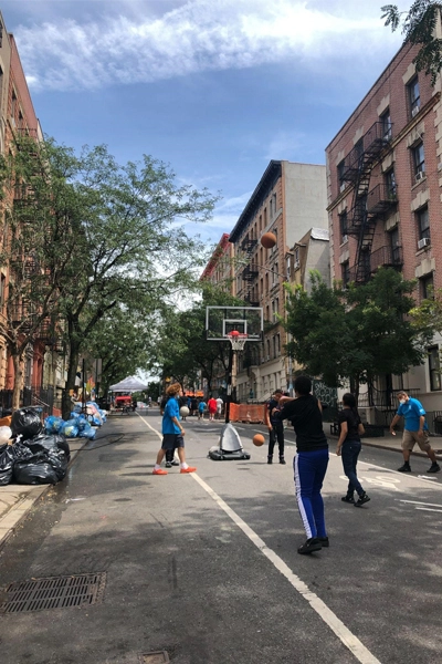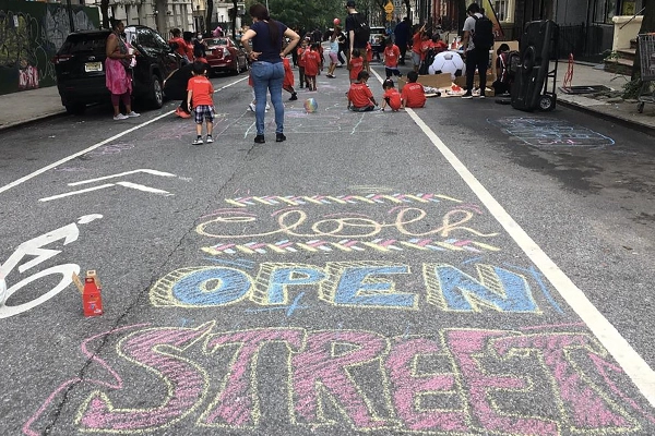 The past year, my colleagues and I at Stantec partnered with a community group to close three street segments for summer play in the neighborhood of Washington Heights. We worked closely with the Community League of the Heights (CLOTH), who has been dedicated to the neighborhood for 66 years, through the Neighborhoods Now initiative organized by the Urban Design Forum and Van Alen Institute. CLOTH wanted to make the streets open to children and residents in July and August to increase access to play and fitness during the pandemic. After selecting three appropriate streets together, Stantec developed site plans for the Open Streets applications and an online survey and drawing exercise to gather programmatic ideas from the community. We also designed marketing materials to help spread the word. For two months, the community was able to reclaim streets as their own space to play, read, draw, and gather.