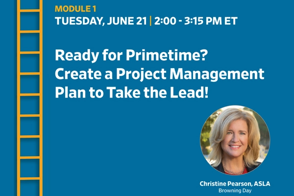 There's just a few hours to go before the start of SKILL | ED! On June 21-23, ASLA is hosting a live webinar each day from 2:00 to 3:15 p.m. ET for this practice management series. Today's topic: Ready for Primetime? Create a Project Management Plan to Take the Lead!, presented by Christine E. Pearson, ASLA.