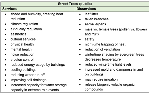 However, even as we see the benefits trees provide, it’s essential to recognize that there are also negative impacts to consider (see the table below). With this in mind, it is clear there is no single approach that works for all locations, and this may well be part of the reason cities struggle with enacting landscape ordinances.