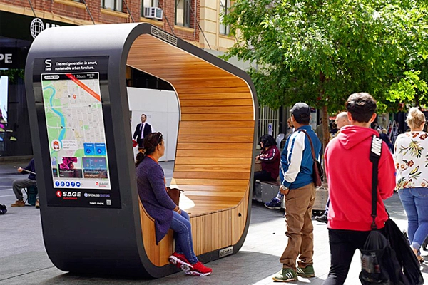The flat side panels on these benches can house high visibility signage or can even accommodate LCD screens, giving municipalities the opportunity to post community notices, give notifications on upcoming events or gain extra revenue from outside advertising. However, the higher power demand of LCD screens will generally require the bench to be connected to an external electricity supply. In that case, these benches are exclusively powered by PV cells only when the LCD screen is not active, which would generally be outside busy periods during the day as well as late in the evening.