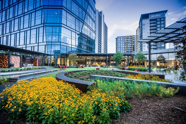 People now want multi-functional spaces, set in nature, spread throughout each aspect of their daily lives, especially during work hours, so that they may benefit from continued health and wellness opportunities. Workers crave direct access to fresh air, sunlight, and natural surroundings to thrive and maintain focus, while companies still uphold the importance of productivity. To accommodate employee demands, businesses are seeking various means of incorporating greenspace in easily accessible courtyards, amphitheaters, and green roofs that provide all the necessary elements to yield high performance. And landscape architects are developing highly imaginative responses to deliver these solutions!