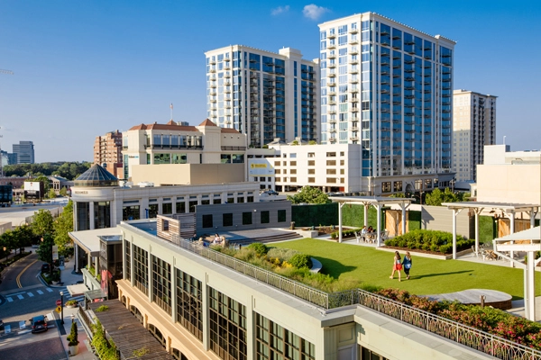 The idea for functional areas atop buildings in the U.S. is not new and dates back to over one hundred years ago. However, in the late 1800s, rooftop areas were primarily used for industrial equipment (and wet laundry!) and were most common in heavily urbanized areas such as New York City. In today's workplace environments, state-of-the-art green roofs are reaching new heights in many cities nationwide. At HGOR, we have reveled in this, as several of our projects enabled us to present very forward-thinking concepts that offer multi-functional areas supporting work and play. HGOR has been fortunate enough to lead and collaborate on several sophisticated rooftop designs for workplace campuses within the southeast region.