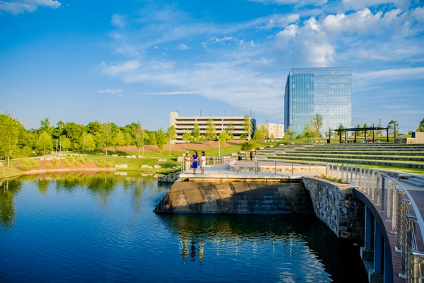 For the media giant's corporate headquarters, we recognized the need for creating highly functional, collaborative outdoor social spaces with elements that truly represent their dynamic company vision. What we delivered responded to their vision through a combination of areas that encourage and support health, wellness, productivity, and connectivity. The three-acre central space offers a private, park-like garden, covered outdoor dining and meeting areas, and large spaces for company events. For this project, we ventured beyond the traditional corporate landscape design with unique geometric design aesthetics utilized in various landscape and hardscape components, including a central pond and surrounding pathways, contributing to a healthier lifestyle within the Cox environment. In 2008, we received an Honor Award for this project from the Georgia Chapter of ASLA.