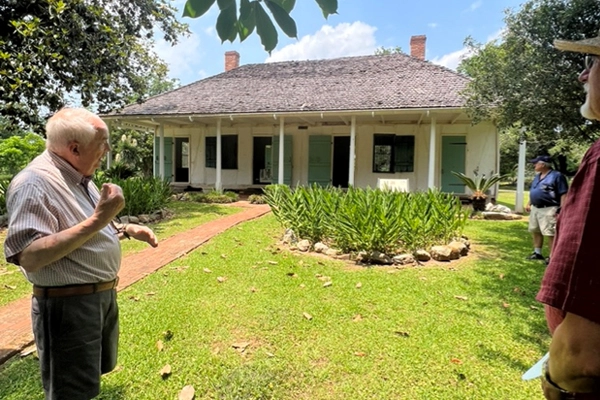 The Oakland Plantation, part of the Cane River Creole NHP, was our final stop for the day. Elvin Shields, a former resident of one of the tenant farmer cabins, spoke to us about his upbringing there. His poignant memories brought us a deeper understanding of the long ties families maintained after slavery along the Cane River. Barbara Justice, chief of interpretation, also joined us again to tell us about the park’s effort to fully represent the many threads of local history represented here.