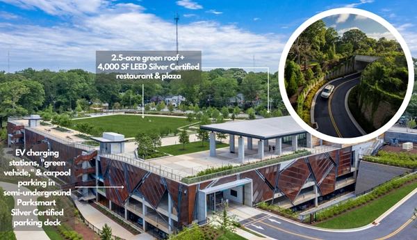 Grant Park Gateway was recently announced as the world's first triple-certified project, receiving LEED, SITES, and Parksmart certifications. The aspirational design transformed an 8-acre declining parking lot into a pedestrian-oriented, environmentally sensitive work of art.