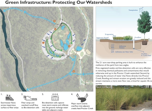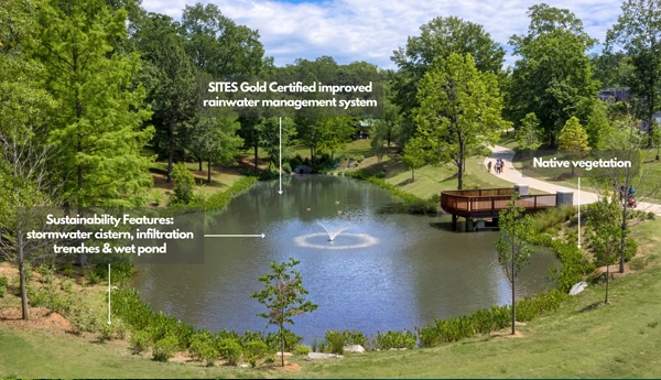 - Through SITES Gold Certification, Grant Park Gateway provides an improved rainwater management system that manages stormwater while simultaneously helping to meet irrigation demands, recharging groundwater, and providing an enhanced stormwater amenity.