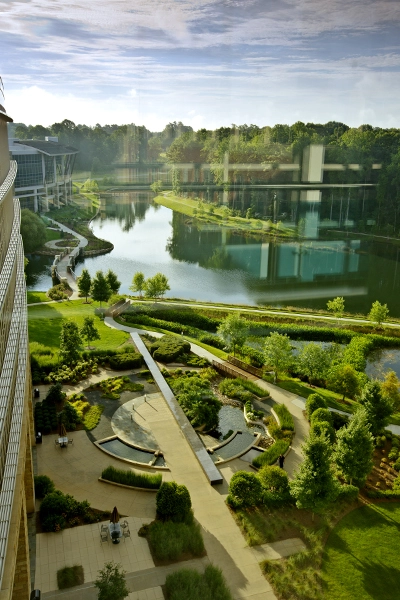 The Lowe's corporate headquarters project was an opportunity to blend a combination of natural systems with innovative designs, resulting in one of the most exciting company landscapes within the state. The firm designed a garden-like series of bio-retention and stormwater courses offering functional courtyard and outdoor spaces accessible to employees. The landscape includes littoral and wetland plantings, numerous spaces to relax in nature, and received a LEED Silver certification.