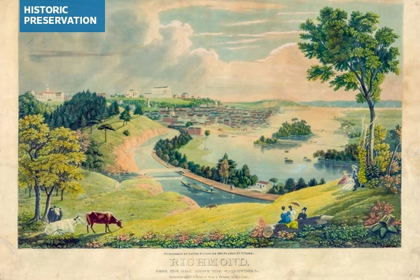 The Alliance for Historic Landscape Preservation (AHLP) is pleased to announce its 2023 annual meeting theme of Richmond on the James: Stories of Landscape Transformation to be held in Richmond, VA. We envision the Richmond meeting as a landscape dialogue/exploration that addresses, analyzes, and critiques contemporary issues of the urban cultural landscape. Homelands of the Powhattans and later a major city of the American South, Richmond is situated at the fall line of the historic James River. Richmond is Virginia’s third capital city after Jamestown and Williamsburg and, for most of the U.S. Civil War, the capital of the Southern Confederacy. It is a vibrant and revitalizing modern city notable for industry, visual arts education, and medicine, but also significant for Virginia’s Capitol Square, the Richmond National Battlefield Park, historic parks, significant cemeteries, and urban streetscapes. The summer of 2020 focused attention on Richmond’s most controversial landscape of memorial monumentality glorifying the Southern Lost Cause Narrative, as well as its legacy of slavery. Richmond’s Shockoe Bottom, listed as one of the Eleven Most Endangered Sites in 2014 by the National Trust for Historic Preservation, was the second largest enslaved persons’ auction site in North America. As part of Richmond’s efforts to acknowledge and repair its complicated past, the city, developers, and the preservation community are exploring ways to embrace the 21st century through densifying and preserving historic neighborhoods; involving institutions of education and government; dismantling and recreating monumental landscapes; focusing attention on memorializing and redeveloping portions of its notorious Shockoe Bottom enslaved auction site; grappling with desecrated and previously ignored Black cemeteries; and celebrating the recreational and scenic opportunities of its James River location.