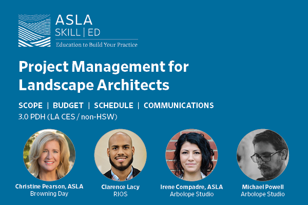 ASLA's ongoing SKILL | ED programming kicked off in June 2021 with a three-day virtual practice management program, during which more than 400 landscape architecture professionals and students came together to invest in their career development. 20 sessions from SKILL | ED 2021, highlighting skills crucial to career growth, are available on-demand via ASLA Online Learning, covering topics from business development, marketing, and professional contracts to billable rates, construction administration, and effective team collaboration.
