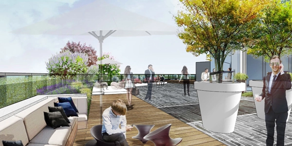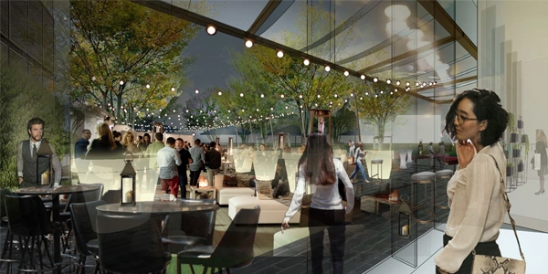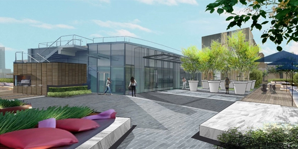 2015 landscape proposals envisaged a roof terrace for corporate events and activities. Click here to view at a larger scale. / image: courtesy of Lee Parks, AECOM