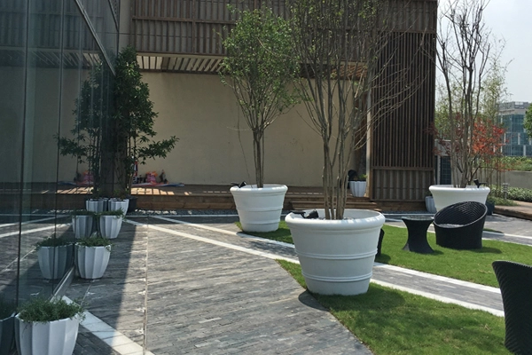 Oversized pots and Chinese grey-brick paving / image: courtesy of Lee Parks, AECOM