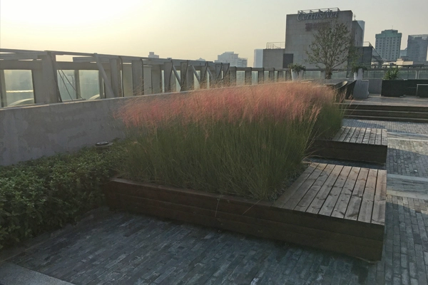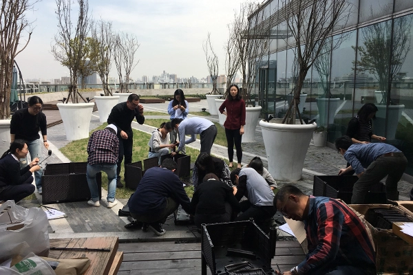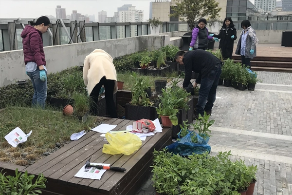 To enhance the space, additional planting containers, soil, and a wider range of seasonal plants were added to increase plant diversity, as there was a limited budget of around RMB20,000 (around $2,850) to make improvements. Plant containers were proposed for plant trials to increase ecological benefits and form the basis of internal research for species mixes or new plant trials that could subsequently be applied to larger scale AECOM landscape projects in public spaces or similar roof gardens in and around the Shanghai area. Others were used for growing vegetables and herbs to harvest food or provide benefits to pollinators.