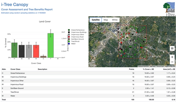 Example of i-Tree Canopy for Uptown Charlotte, NC / image: V. Westendorff, 2022