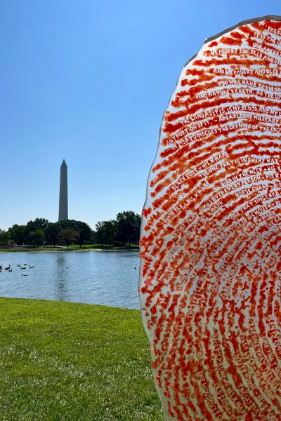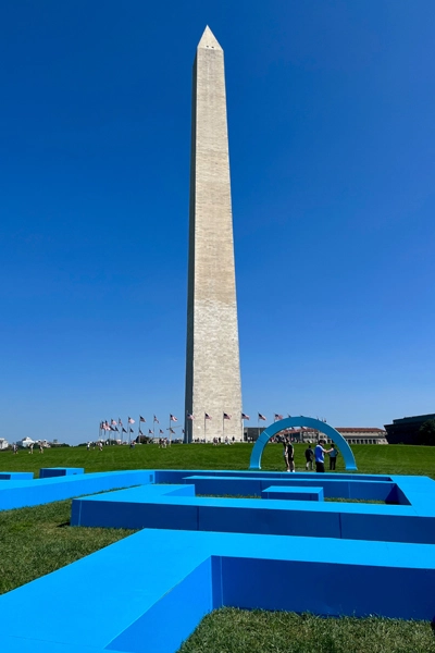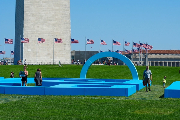 For the next month—through September 18, 2023—there is an outdoor art exhibition to explore across National Mall, from the plaza in front of the Lincoln Memorial to Constitution Gardens and sites near the Washington Monument. The Trust for the National Mall, National Park Service, and the National Capital Planning Commission, with curator Monument Lab, selected six artists for Beyond Granite: Pulling Together. The goal: to "create a more inclusive, equitable, and representative commemorative landscape on the National Mall."