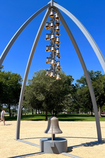 The installations offer a striking contrast to the Mall's permanent memorials. While articles on Beyond Granite abound (The New York Times and The Washington Post, among others, have covered it), it's worth a visit if you're in Washington, DC, to experience it for yourself. Written descriptions and photographs never quite capture the Mall, with its mix of tourists and locals enjoying the space and enlivening the monumental expanse, and cannot fully convey the installations' sound and interactive components. On the sunny Saturday when I visited, the Mall was abuzz, as usual, with tour groups big and small, joggers, rugby players, dog walkers, picnickers... My impression was that many more people stumbled upon the exhibition than specifically sought it out. When you ascend the steps of the National Gallery of Art, or any of the Mall's other grand structures, you know what you're in for. But when you have an unexpected encounter with something new in an otherwise familiar landscape or setting, it can be a very different experience of art—one that surprises you into engaging with a perspective you might not have otherwise.