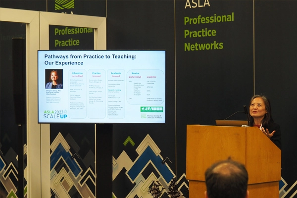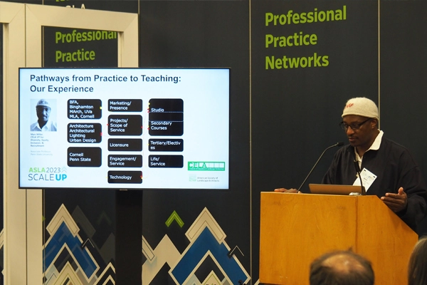 In "More than Design Studio: Translating Practice to Teaching," William Estes, II, ASLA, LEED AP, from the Education & Practice PPN and CELA leaders Chingwen Cheng, PhD, ASLA, PLA, LEED AP, and Marc Miller, ASLA, discussed how practitioners can leverage professional experience into teaching skillsets. The presentations discussed ways academic programs structure learning content beyond the design studio and how that impacts job announcements and selections.